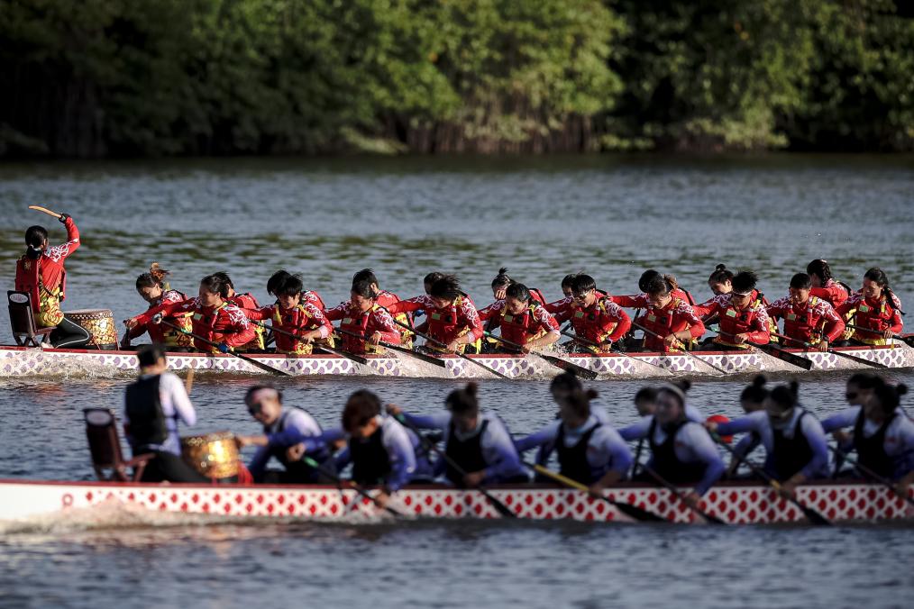 當(dāng)天還進(jìn)行了龍舟項目的多場決賽,廣東隊曾德林奪得標(biāo)準(zhǔn)龍舟混合直道競速200米一等獎。曾多次斬獲國際龍舟賽事冠軍的他表示,在三亞這些天就像參加一場全民族的家庭聚會,與其他隊伍也會相互加油、打氣,比賽氛而融洽。