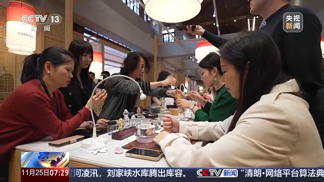 總臺(tái)央視記者 高媛:我身后這個(gè)不大的空間里擠滿了人,這里聚集了17個(gè)來(lái)自法國(guó)的品牌。它們展出的不只是產(chǎn)品,而是背后的工藝。精美的產(chǎn)品變成了一針一線的故事,觀眾還可以參與其中。
