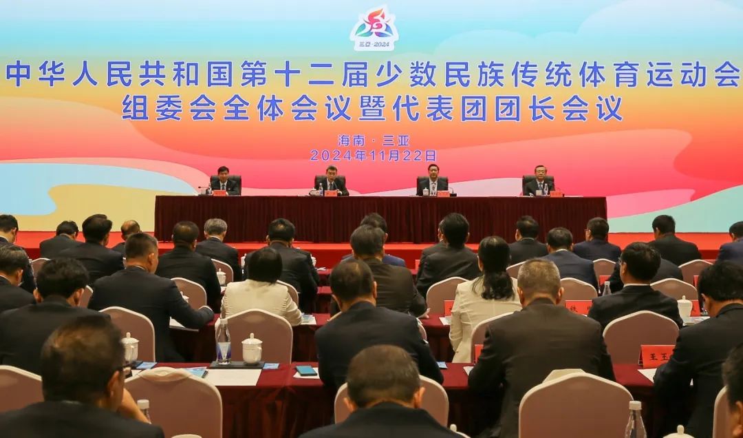 11月22日下午,第十二屆全國少數(shù)民族傳統(tǒng)體育運動會組委會全體會議暨代表團(tuán)團(tuán)長會議在海南三亞召開。民族畫報社 盧旭 譚宇杰 攝