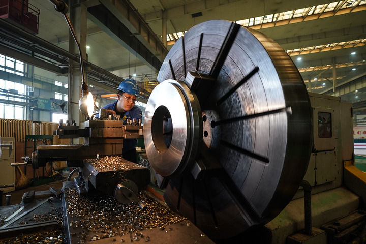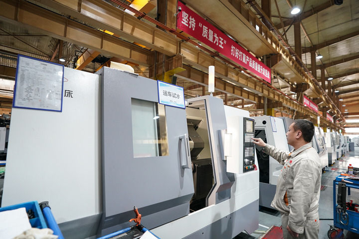 2024年3月21日,在沈陽微控飛輪技術(shù)股份有限公司,工人在機加車間操控機床。新華社記者 楊青 攝