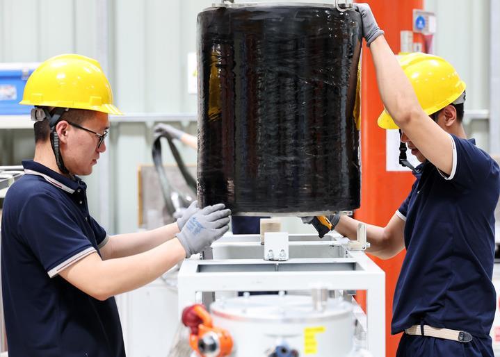 沈陽微控飛輪技術(shù)股份有限公司的工人在進行組裝工作(2024年6月13日拍攝)。 新華社記者 李鋼 攝