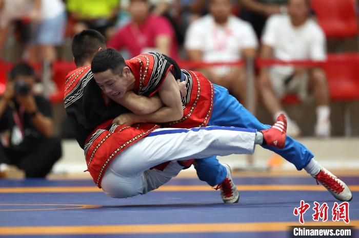 就在3、4秒的電光石火間,一場比賽就定下勝負。正在海南省三亞市進行的第十二屆全國少數(shù)民族傳統(tǒng)體育運動會(下稱“運動會”)上,民族式摔跤激烈進行,展示力量與智慧的較量。