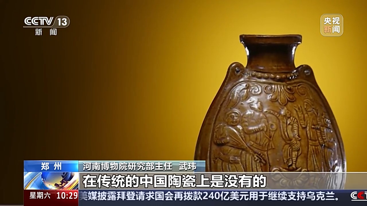 河南博物院研究部主任 武瑋:這種題材實(shí)際上在傳統(tǒng)的中國(guó)陶瓷上是沒有的。北朝的時(shí)期整個(gè)社會(huì)對(duì)它的一種崇尚或者一種喜好,才會(huì)出現(xiàn)這樣一個(gè)題材,整個(gè)中西方的交流在深入發(fā)展。