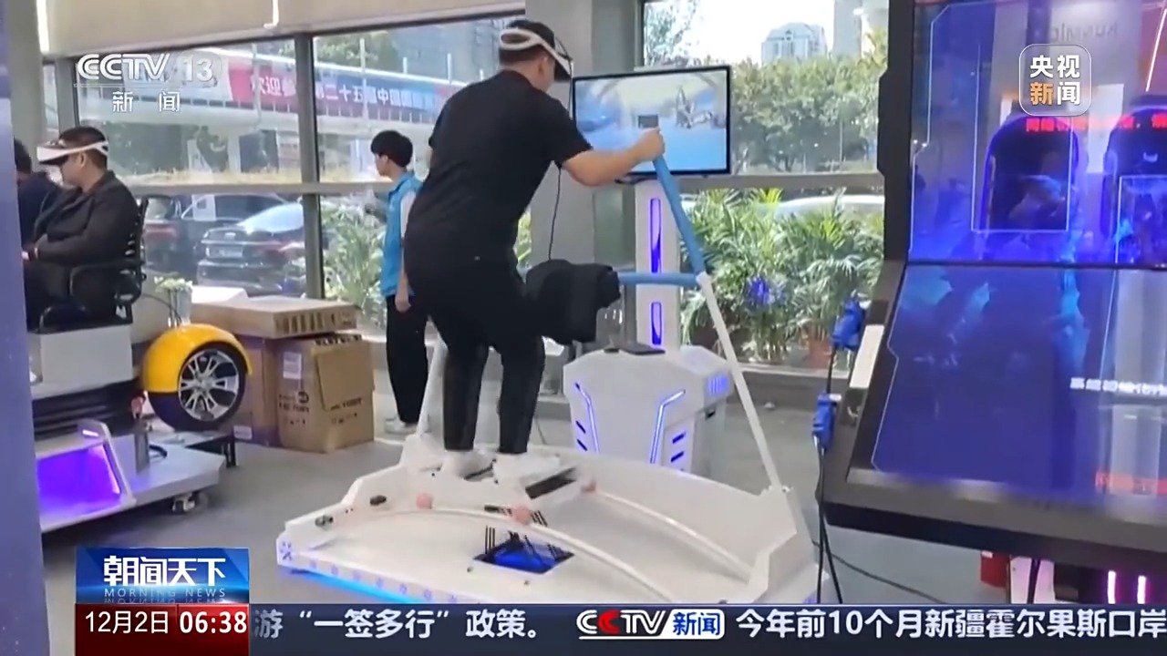 在深圳,一大早雪場便陸陸續(xù)續(xù)迎來了滑雪愛好者們。購買冰雪裝備器材是開展冰雪運動的基礎,琳瑯滿目的商品讓人目不暇接。除了常規(guī)滑雪裝備外,新技術也在賦能滑雪產(chǎn)業(yè)鏈發(fā)展。這臺由我國自主研發(fā)的VR模擬滑雪機,利用虛擬現(xiàn)實技術模擬真實滑雪場景。
