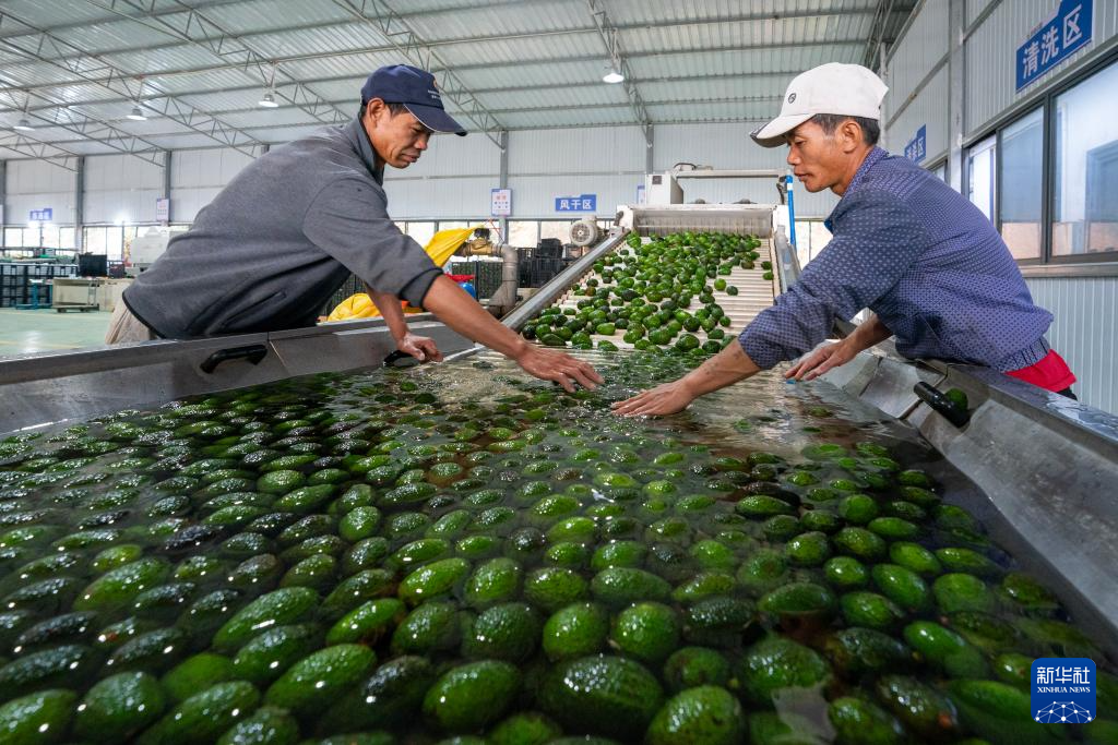 工人在普洱綠銀生物股份有限公司的牛油果智能分選車間流水線上工作(10月28日攝)。新華社記者 陳欣波 攝