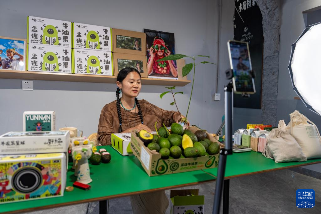 孟連縣“牛友果星球”工作室的一名主播通過直播售賣牛油果(10月28日攝)。新華社記者 陳欣波 攝