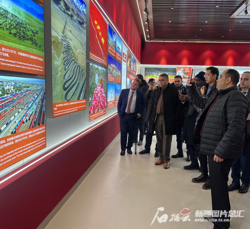 11月29日,考察團(tuán)一行在“新疆的反恐和去極端化斗爭主題展”參觀。石榴云/新疆日報記者 米日古力·吾攝