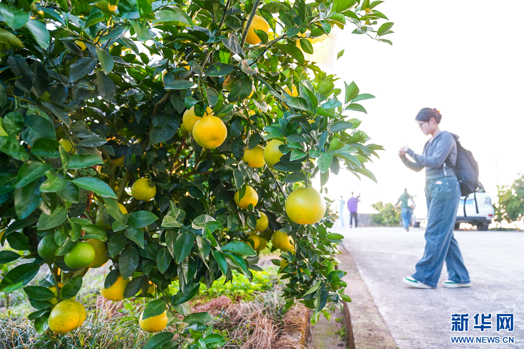 長汀縣三洲鎮(zhèn)豐盈美麗生態(tài)農(nóng)場,豐收的果實掛滿枝頭。新華網(wǎng) 肖和勇 攝