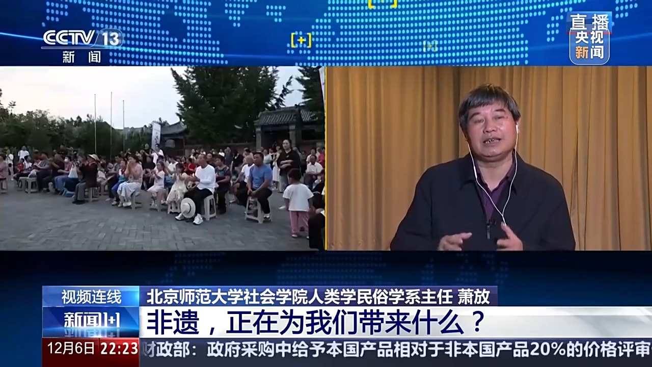 北京師范大學(xué)社會(huì)學(xué)院人類(lèi)學(xué)民俗學(xué)系主任 蕭放:春節(jié)就是大年,大年是年年過(guò),當(dāng)然年年都過(guò)得喜慶熱鬧,今年因?yàn)槭浅蔀槿祟?lèi)非遺之后的第一個(gè)春節(jié),當(dāng)然我們就過(guò)得更加熱鬧,更加紅火,更加喜慶。但如何讓我們熱鬧、喜慶、紅火實(shí)現(xiàn)呢?就需要我們更多的人自覺(jué)地去參與這個(gè)年節(jié)活動(dòng),或者各個(gè)地方政府創(chuàng)造條件,讓我們年節(jié)的氛圍更加濃郁,讓我們年節(jié)喜悅的氣氛更加熱烈,然后我們可能說(shuō)既然是人類(lèi)非遺之后的第一個(gè)春節(jié),我們是不是有更多的傳統(tǒng)熱鬧的方式,能夠讓我們進(jìn)行呢,我想這是我們地方政府管理部門(mén)可以考慮的問(wèn)題。