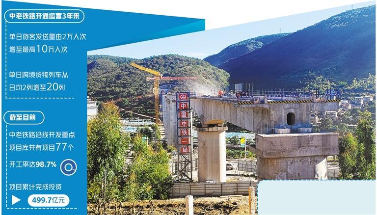 3年來,云南省搶抓中老鐵路機遇,以通道能力提升、物流樞紐建設(shè)、沿線產(chǎn)業(yè)開發(fā)和經(jīng)營主體培育為重點,切實打造一條開放發(fā)展的黃金道路。截至目前,中老鐵路沿線開發(fā)重點項目庫共有項目77個,開工率達98.7%,項目累計完成投資499.7億元,投資完成率超66.7%,對促進中老鐵路沿線開發(fā)發(fā)揮了重要作用。