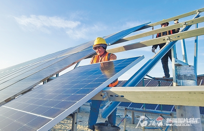 11月以來,在和田地區(qū)洛浦縣萬畝“光伏+農(nóng)業(yè)”綜合治沙項(xiàng)目基地,工人們在加緊安裝光伏板。今年3月,這個(gè)項(xiàng)目才剛剛動(dòng)工,僅6個(gè)月,萬畝沙漠就變得平平整整,一列列光伏支架的底座水泥樁整齊列隊(duì),等待檢閱。