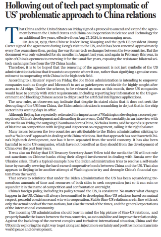 原標題:Hollowing out of tech pact symptomatic of US' problematic approach to China relations