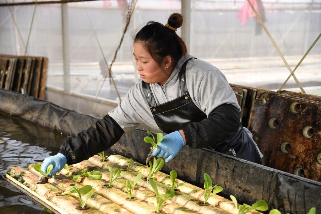 11月28日,在孫振鴻的農(nóng)場里,一名工人正在種植有機(jī)蔬菜。新華社記者 洪澤華 攝