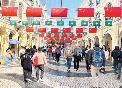連日來(lái),澳門(mén)街頭洋溢著熱烈喜慶的氛圍,慶祝澳門(mén)回歸祖國(guó)25周年。