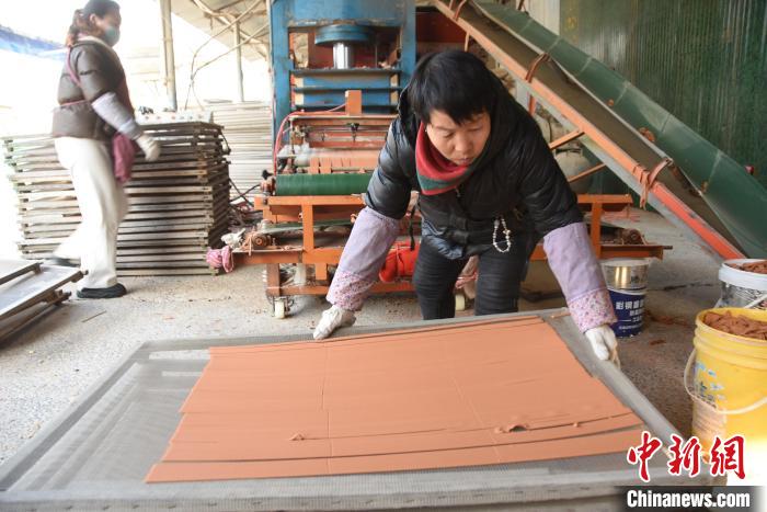 圖為工人將成型的香條放置于架子。王宇 攝