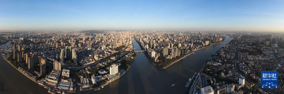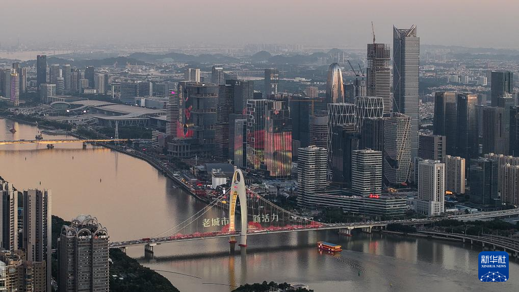 廣州市區(qū)沐浴在夕陽(yáng)余暉之中(2024年11月29日攝,無(wú)人機(jī)照片)。