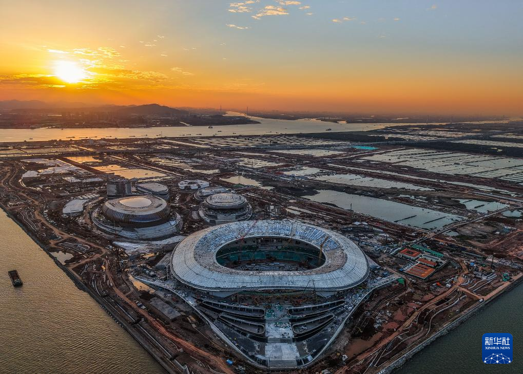 位于粵港澳大灣區(qū)“地理幾何中心”的廣州南沙全民文化體育綜合體建設(shè)進(jìn)展順利(2024年11月27日攝,無(wú)人機(jī)照片)。