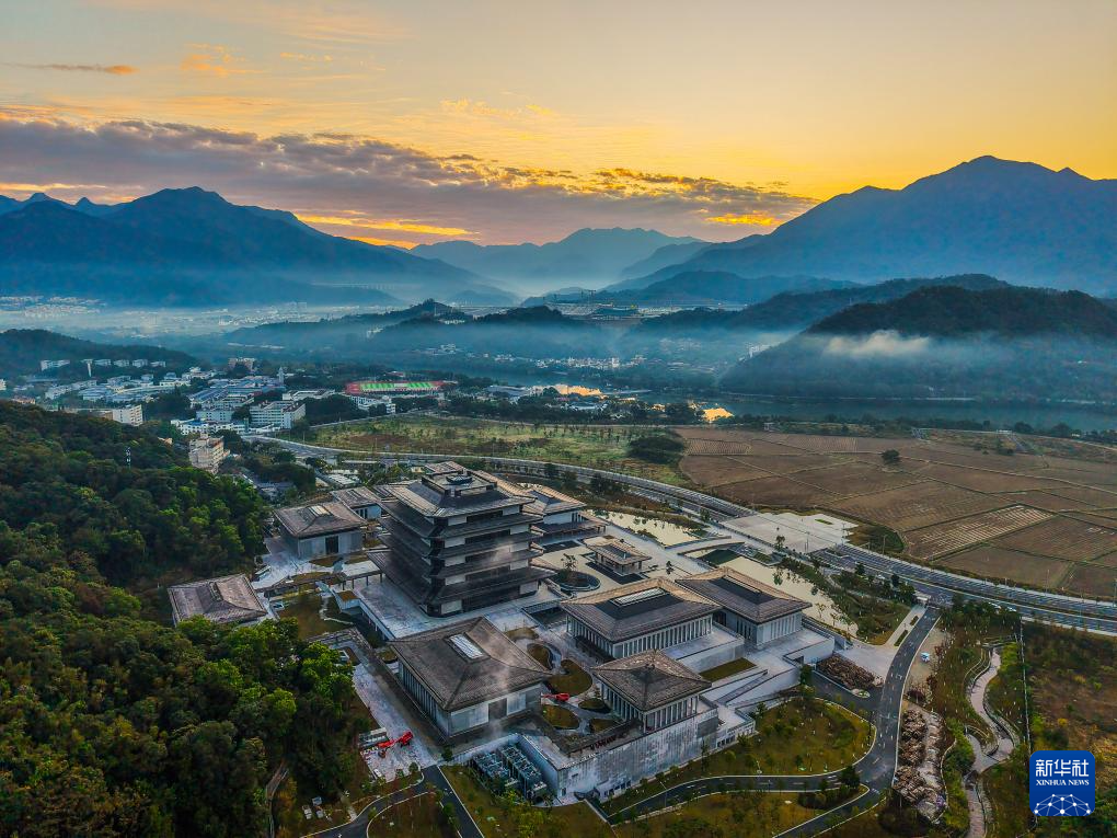 沐浴在晨曦中的廣州國(guó)家版本館(2024年12月3日攝,無(wú)人機(jī)照片)。