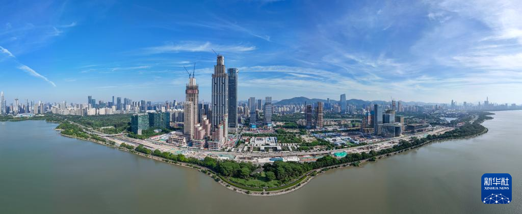 這是建設(shè)中的深圳灣超級(jí)總部基地(2024年10月3日攝,無(wú)人機(jī)全景照片)。