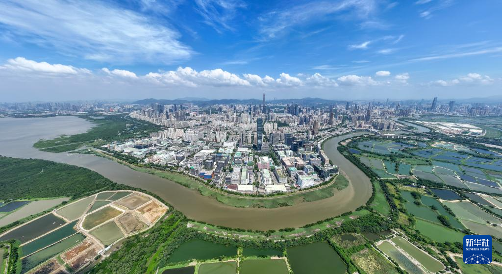 這是河套深港科技創(chuàng)新合作區(qū)及深圳河兩岸風(fēng)光(2024年9月19日攝,無(wú)人機(jī)照片)。