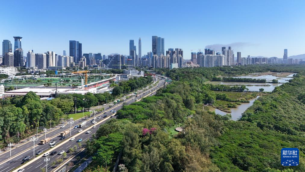 這是位于深圳福田紅樹林濕地(2024年11月29日攝,無(wú)人機(jī)照片)。