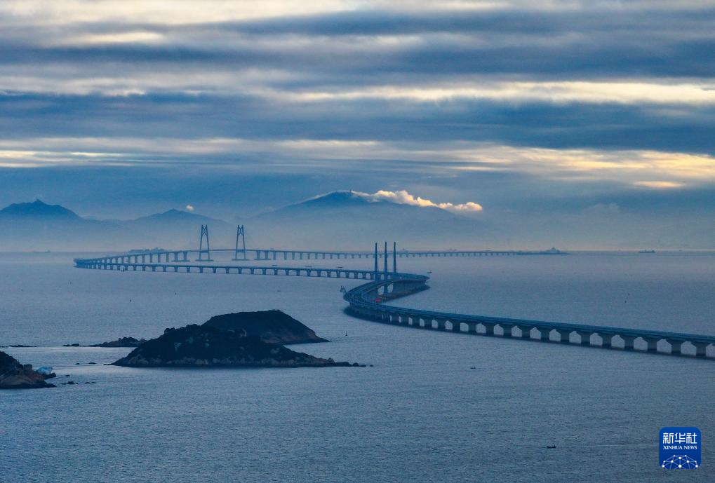 這是晨曦中的港珠澳大橋(2023年12月15日攝,無(wú)人機(jī)照片)。