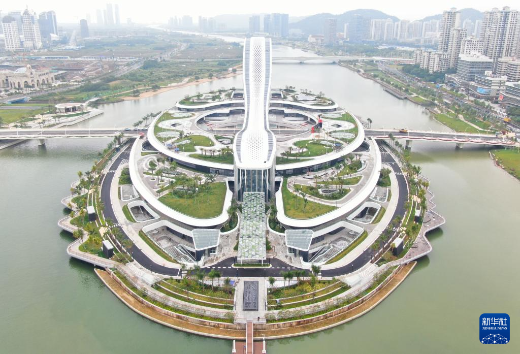 這是橫琴粵澳深度合作區(qū)標(biāo)志(2024年11月26日攝,無(wú)人機(jī)照片)。