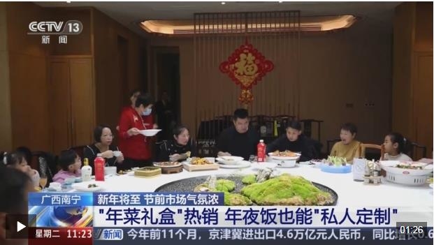 在廣西南寧,很多餐廳都開始了“年夜飯預(yù)訂”,并且在線上推出了“年菜禮盒”“年夜飯外賣大禮包”多款套餐,菜品特色主要以南寧本地菜為主,商家還能根據(jù)顧客的“私人定制”,對年夜飯?zhí)撞偷牟似愤M(jìn)行調(diào)整。