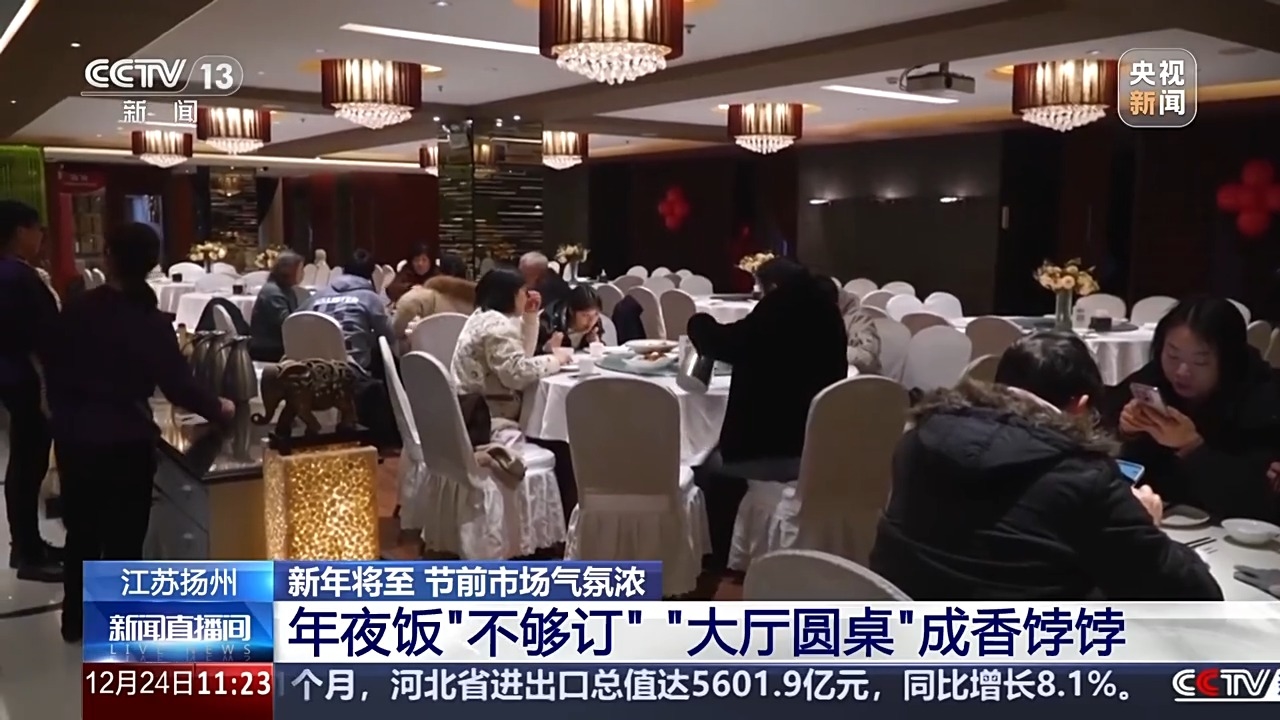 在江蘇揚(yáng)州,記者在一家酒店餐飲中心看到,預(yù)訂年夜飯的電話響個(gè)不停。據(jù)酒店經(jīng)理介紹,目前年夜飯的包廂已經(jīng)全部售罄,數(shù)量不多的“大廳圓桌”也成了搶手的香餑餑,針對年夜飯“不夠訂”的情況,不少酒店也紛紛增加了大廳散客點(diǎn)餐區(qū)。為了讓市民游客有更好的用餐體驗(yàn),當(dāng)?shù)馗鞑惋嫷甓荚谀暌癸埐藛紊锨笮虑笞?,同時(shí)增加表演、互動(dòng)游戲等元素。