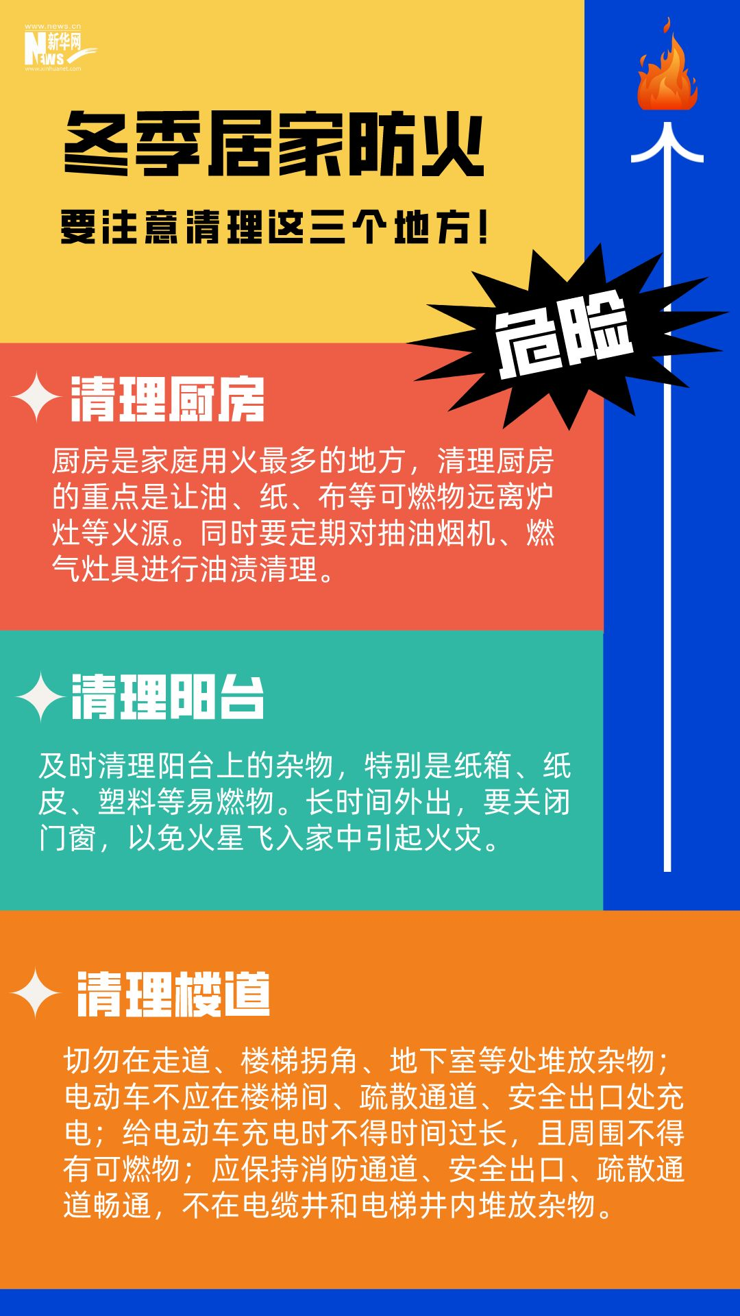 男子在家中用火盆取暖時,不慎引燃身上衣物;女子在電暖器上晾衣服引發(fā)火災(zāi);母子二人因在家中燒煤取暖、通風(fēng)不暢導(dǎo)致一氧化碳中毒......冬季天氣寒冷干燥,晝夜溫差大,生活用火、用氣、用電增加。若疏忽大意,極易引發(fā)火災(zāi)。安全過冬,居家防火這些細節(jié)要注意。