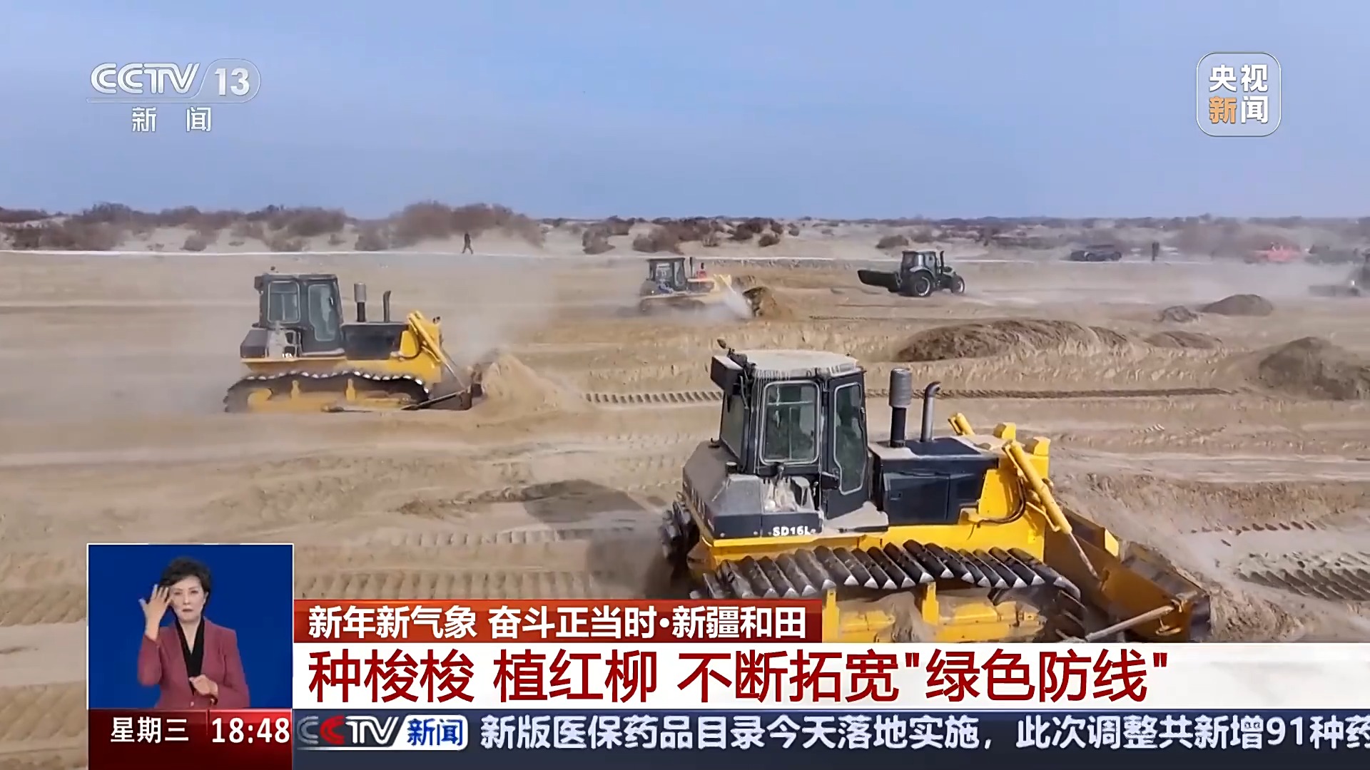 新年新氣象,奮斗正當時。去年11月28日上午,隨著最后一棵玫瑰花苗種下,長達285公里的塔克拉瑪干沙漠邊緣阻擊戰(zhàn)空白區(qū)順利實現(xiàn)“鎖邊合龍”。“鎖邊”之后,當?shù)刂紊车哪_步并沒有停下,還在不斷地對鎖邊帶進行拓寬和加固。新的一年,他們有何新計劃、新目標?