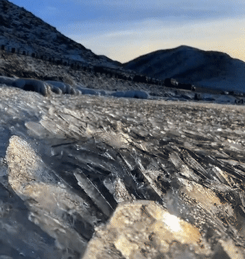 冰推是一種自然現(xiàn)象,一般發(fā)生在寒冷的冬季,藍(lán)色的湖面上無數(shù)散落的冰塊,在風(fēng)力作用下,如“潮水”般不斷涌向岸邊,冰塊隨著波浪起伏相互碰撞,發(fā)出清脆的聲音,伴隨著風(fēng)聲,猶如大自然的“鳴唱”。