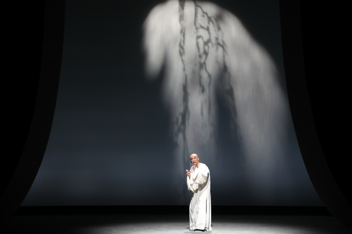 李政成的精湛表演則使創(chuàng)作完美閉環(huán)。在描繪鄭板橋繪畫菊花與蘭花的情景時,他巧妙地采用了文戲武唱的手法,別具匠心地展現(xiàn)了鄭板橋的才華與骨氣。而在劇終部分,長達十多分鐘、包含56個核心唱段的唱腔如波浪般層層推進,將鄭板橋一生的感悟推至觀眾心底。舞臺上的清冷視覺效果與演員熾熱的情感表達形成了鮮明的對比,在戲劇的張力中,一個有溫度、有深度、有情懷的鄭板橋仿佛從歷史中走來,真正“活”了起來。