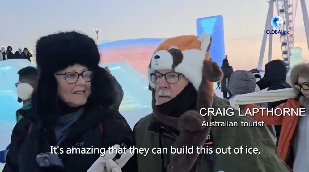 一旁的克雷格·拉普索恩頭戴俏皮卡通棉帽,同樣十分感慨。他驚嘆于能工巧匠們用冰雪構筑如此繁多的美麗景觀,不可思議之感溢于言表。他還留意到哈爾濱冰雪大世界為成人與兒童精心配備冰上自行車等娛樂設施,深感此地適宜全家出游,讓每一位家庭成員都能投身冰雪運動,暢享冰雪王國的歡樂氛圍。