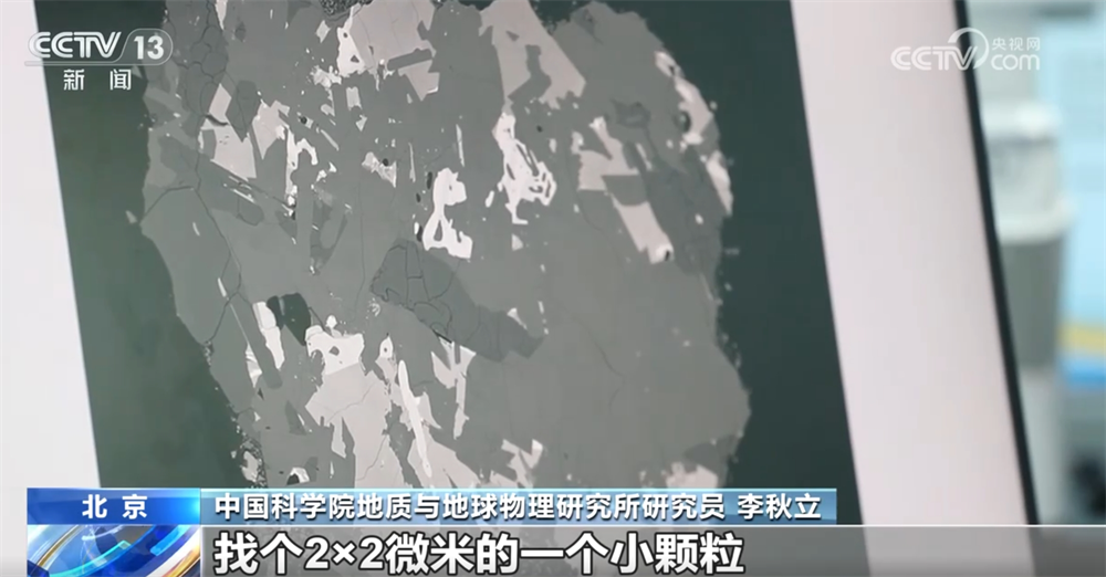 李秋立稱:“我們要在里邊首先找到記錄時間的小礦物,找出來之后變成離子激發(fā)出來,它這里邊哪兒是定年礦物呢?要把它放到最小的這一顆白點,是定年礦物。那么這顆巖屑的實物有多大?大概800微米,在這個800×800微米里邊找個2×2微米的一個小顆粒,在這么小的范圍可以激發(fā)它的,目前只有離子探針這個技術(shù),我們進行了長期訓(xùn)練,可以把它做到更小的范圍內(nèi)測得更準(zhǔn)的數(shù)據(jù)。”