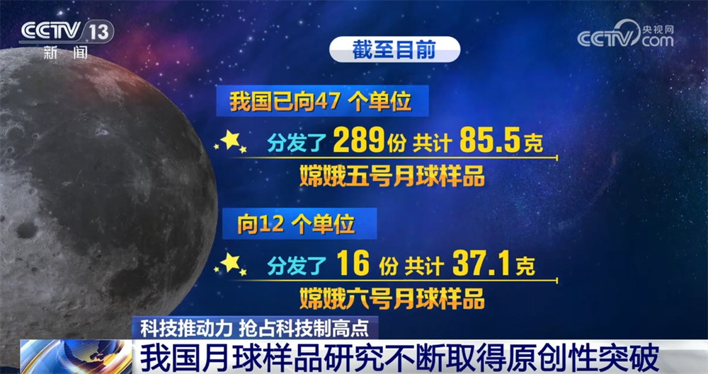 截至目前,我國已向47個單位分發(fā)了289份共計85.5克嫦娥五號月球樣品,向12個單位分發(fā)了16份共計37.1克嫦娥六號月球樣品。利用最新分發(fā)的嫦娥六號月球樣品,中國科學(xué)院國家天文臺和廣州地球化學(xué)研究所還在月背樣品特征、月球演化活動等領(lǐng)域取得了一批重要成果。2025年,更多月壤研究項目正在陸續(xù)部署和開展,各項研究加速向前,有望幫助我們認識一個“全新”的月球。