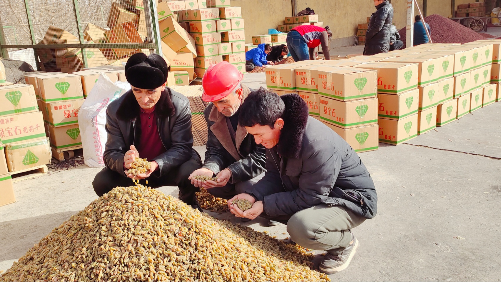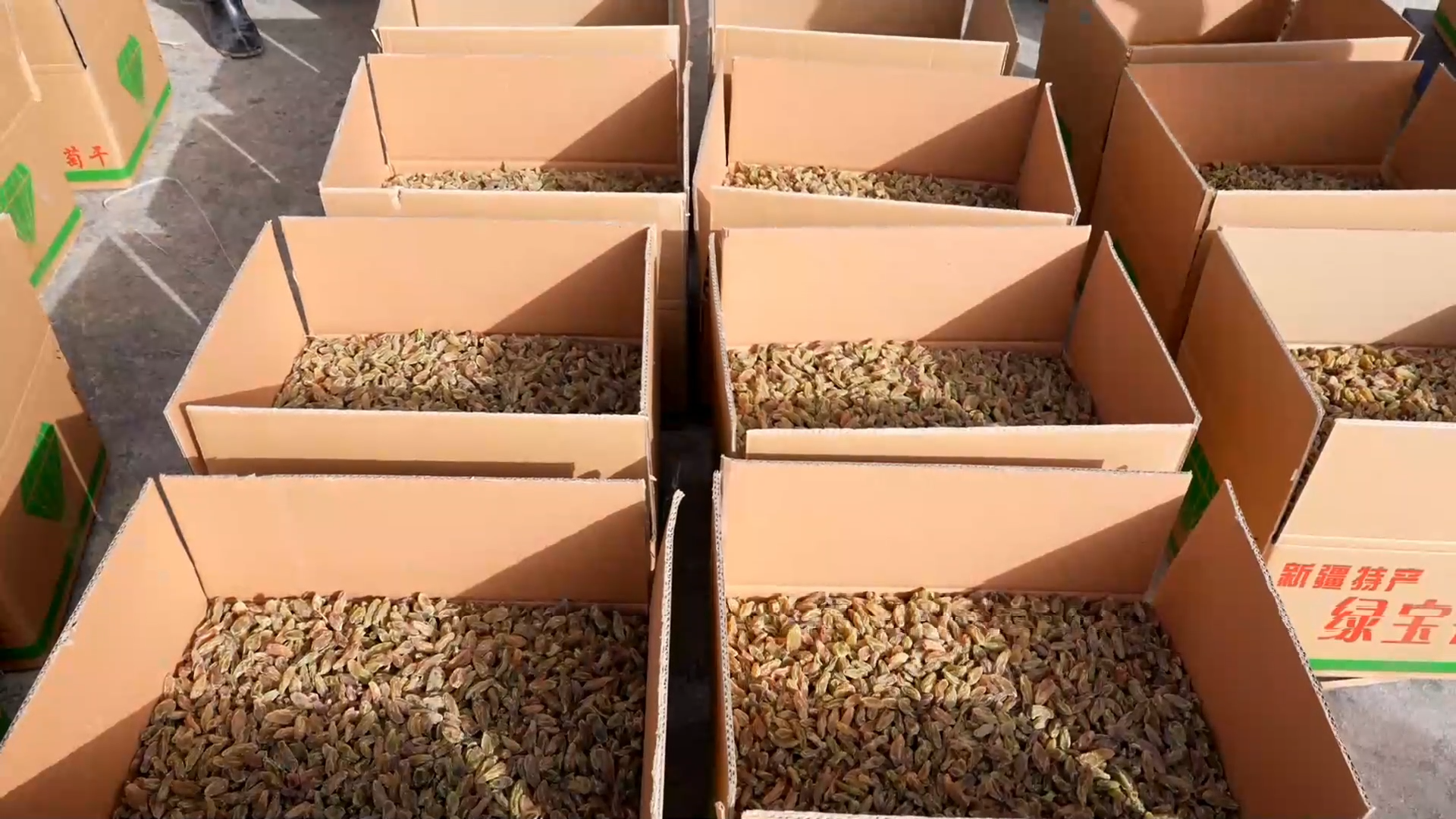 晾曬加工好的葡萄干打包裝箱 (吾哈力妮薩·努爾麥麥提 攝)