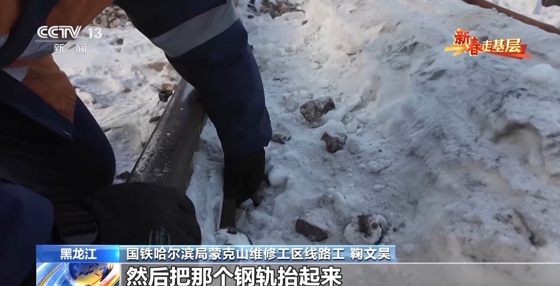 國鐵哈爾濱局蒙克山維修工區(qū)班長 翟明朗:我們到現(xiàn)場最冷就是凍腳,只要一停下來,兩三分鐘腳就凍麻了,要是不烤烤火,這腳一天都緩不過來。