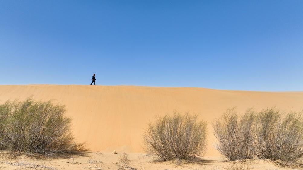家住庫布其沙漠深處的烏日更,童年記憶里只有一種顏色。“家里灶臺、柜上有擦不完的黃沙,出門就是沙梁。”烏日更回憶說,家鄉(xiāng)有個民謠唱道,“沙里人苦,沙里人累,滿天風沙無植被……”