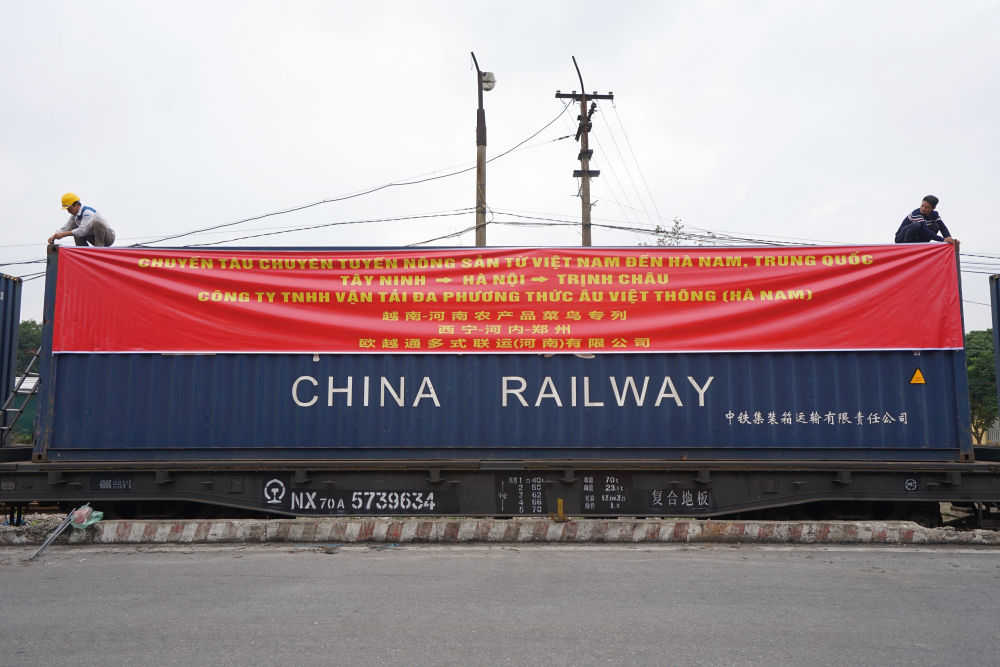 2024年1月15日,載有1000噸木薯淀粉的中越班列列車從越南河內(nèi)啟程,駛向中國鄭州。新華社記者 胡佳麗 攝