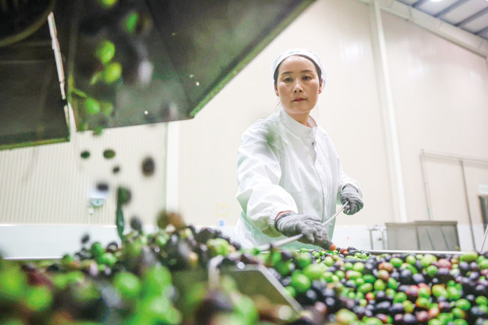 在中國(guó)西北的甘肅隴南,上百萬(wàn)畝油橄欖已采摘進(jìn)入榨油生產(chǎn)線,當(dāng)?shù)厝舜汗?jié)拜年帶上一盒新榨橄欖油,健康又體面;