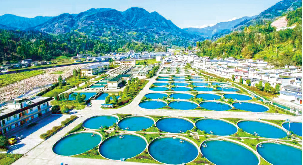 在四川省天全水產(chǎn)現(xiàn)代農(nóng)業(yè)園內(nèi),上百個(gè)圓形流水魚池依河而建。圖片由天全縣委宣傳部提供。