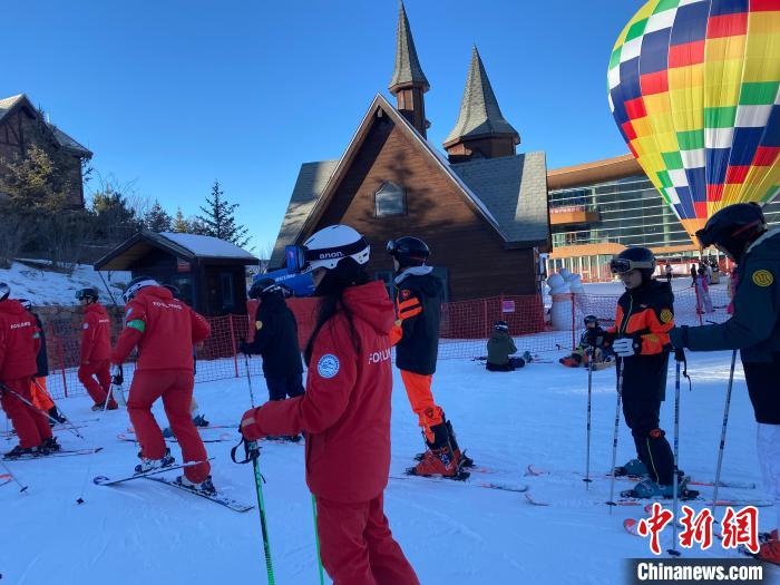 正值2024至2025雪季期間,當(dāng)日下午,一行人來(lái)到富龍滑雪場(chǎng)體驗(yàn)滑雪??紤]多數(shù)人是“首滑”,當(dāng)?shù)匕才帕藢I(yè)教練教授雙板滑雪入門(mén)知識(shí)。