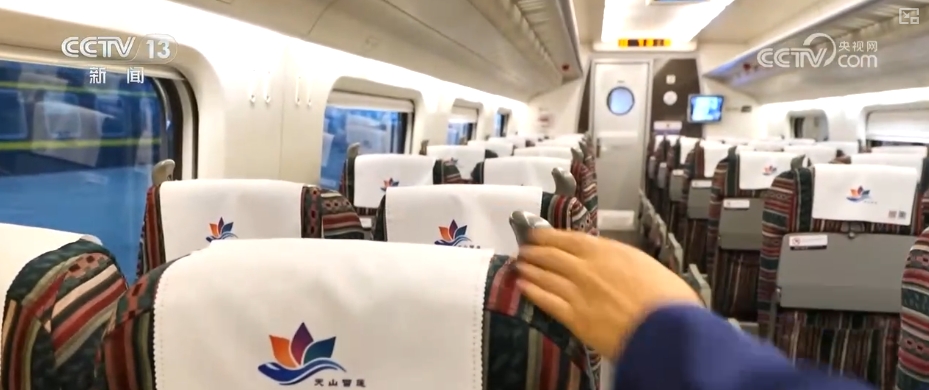 國鐵烏魯木齊局烏魯木齊車輛段車輛乘務(wù)員鮑志偉介紹,每趟列車都有重點旅客專用席位。在重點旅客專用席位旁會設(shè)置這種安全綁帶,為了方便固定輪椅,避免輪椅在列車運行中移動。專用席位地方很大,只為給特別的他們提供一個舒適安全的空間。