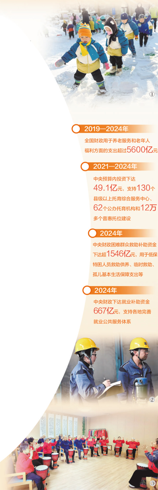 聚焦幼有所育,財(cái)稅部門也推出系列舉措。2021—2024年,中央預(yù)算內(nèi)投資下達(dá)49.1億元,支持130個(gè)縣級(jí)以上托育綜合服務(wù)中心、62個(gè)公辦托育機(jī)構(gòu)和12萬多個(gè)普惠托位建設(shè),更好滿足群眾托育服務(wù)需求。
