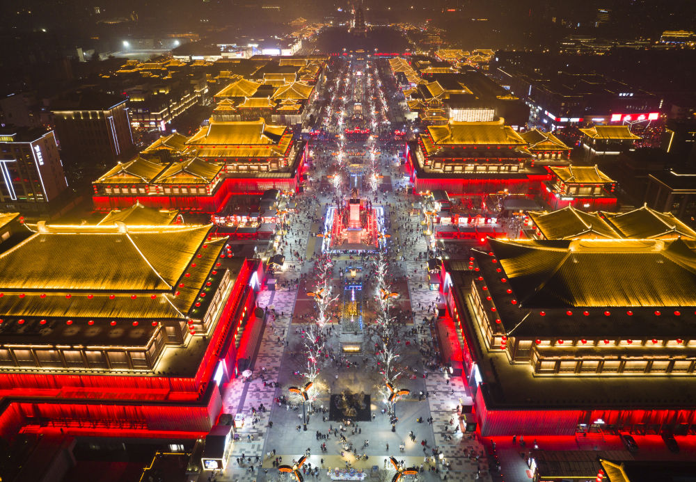 西安大唐不夜城景色(1月22日攝,無人機(jī)照片)。新華社記者 邵瑞 攝