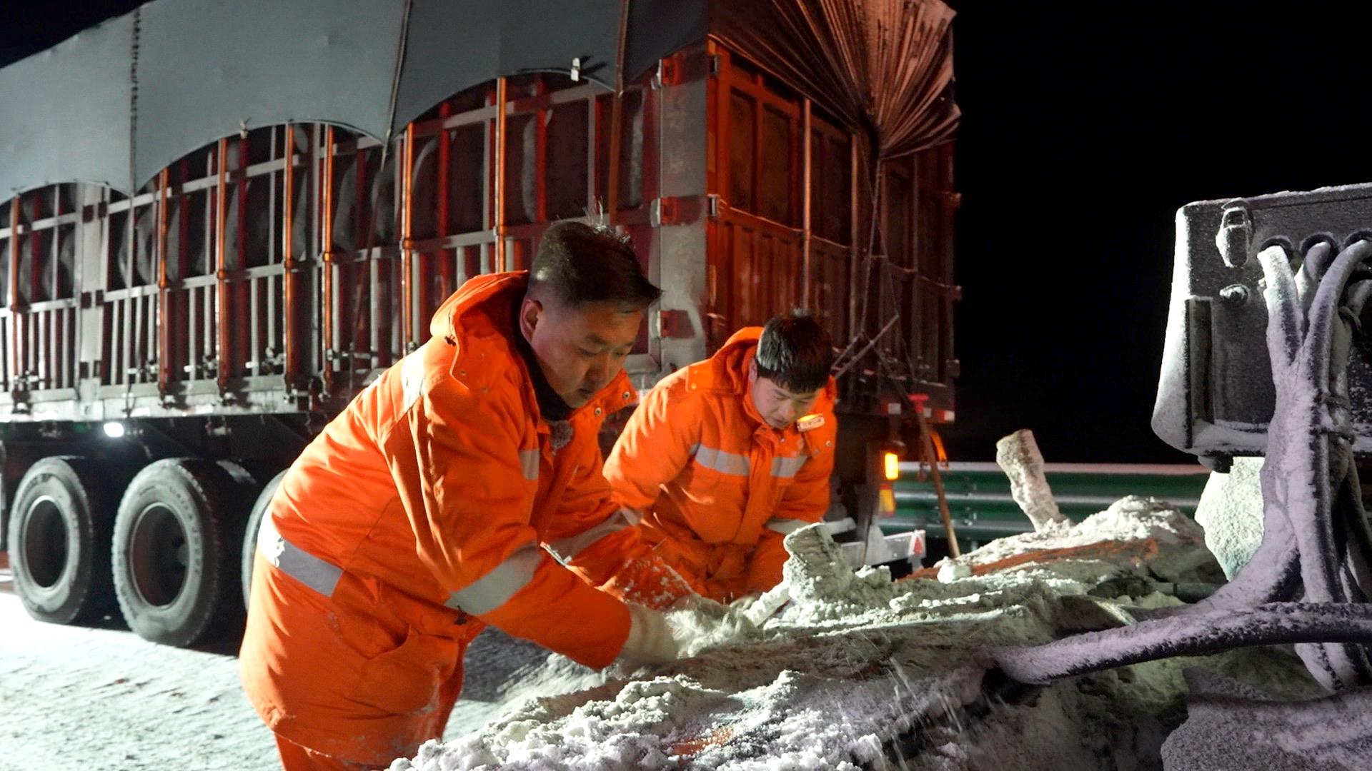 當(dāng)除雪滾刷被冰雪塞滿,公路人著急地徒手清理起來。