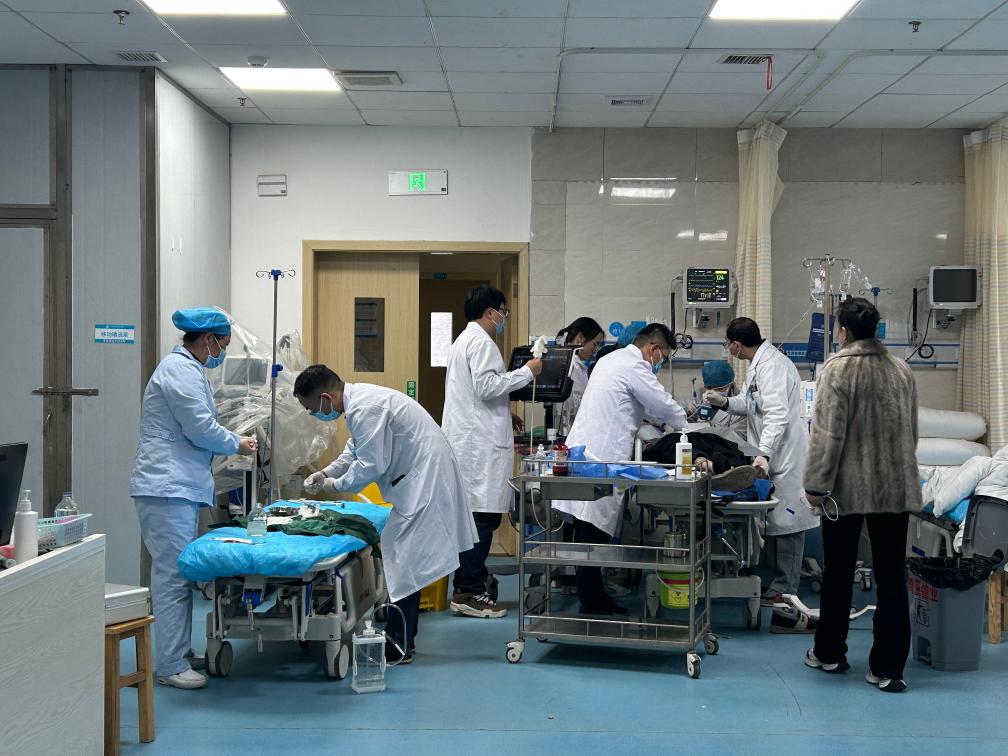 蘇俊松了口氣:“每年過年都會有危重患者。去年大年初二有6臺心肌梗死的手術(shù),一直忙到凌晨4點。前年還有一位病人,因為咳血引起心跳呼吸驟停,搶救了6個小時。”