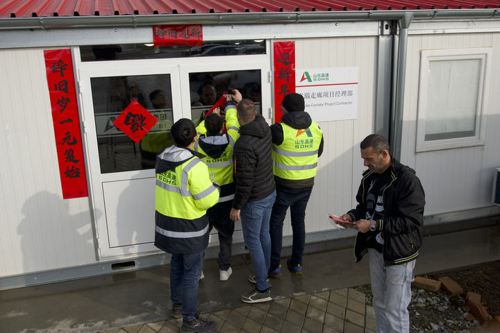 “春聯(lián)一貼,年味兒就濃了!”除夕當(dāng)天,塞爾維亞“多瑙走廊”快速路項(xiàng)目綜合部負(fù)責(zé)人吳一帶著塞籍員工一起貼春聯(lián)裝扮項(xiàng)目營(yíng)地,現(xiàn)場(chǎng)一片歡聲笑語(yǔ)。