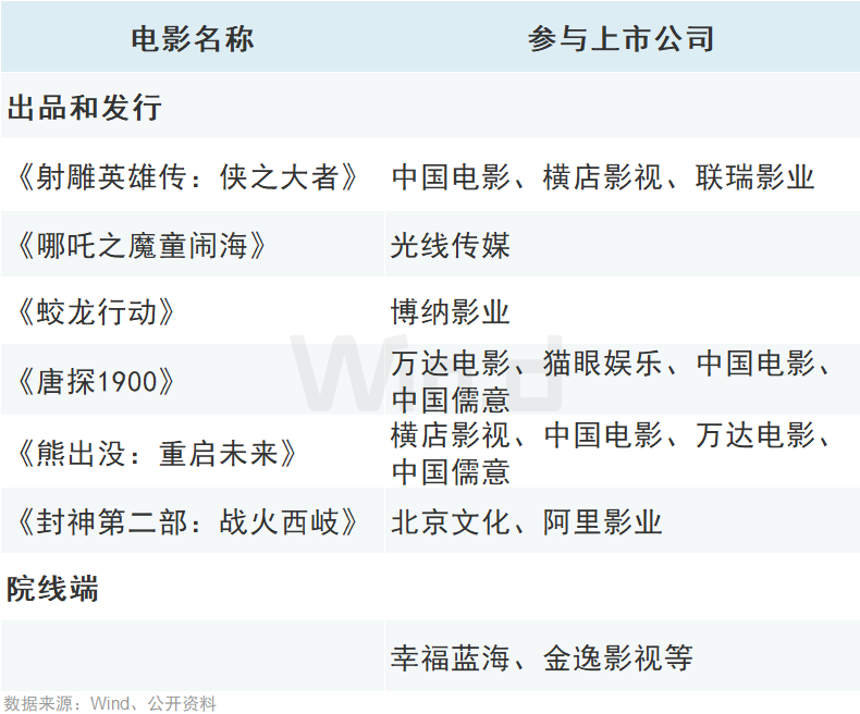 據(jù)公開(kāi)資料整理,多家上市公司參與春節(jié)檔電影出品、發(fā)行等: